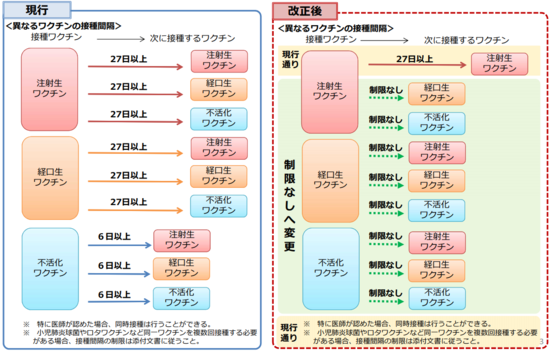 - 予防接種の接種間隔が10月1日より以下の図のように変更となります。